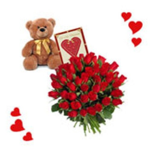 25 Red Roses Bunch, 6 inches Cute Teddy and Greeting Card is a perfect gift to your girlfriend or boyfriend for Valentine’s Day