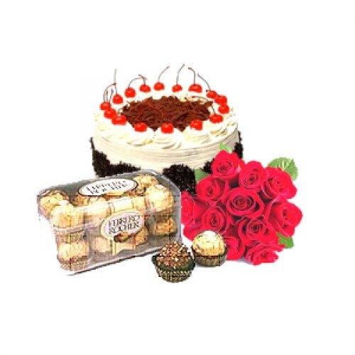 10 red roses bunch, 16 ferrero rocher chocolates,halfkg cake is a combo pack for the valentines day