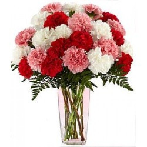20 colorful Carnation Flowers with fillers arranged in a glass vase is an ideal gift for all occasions.